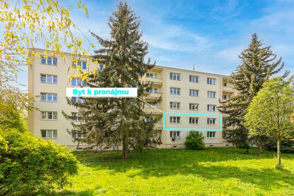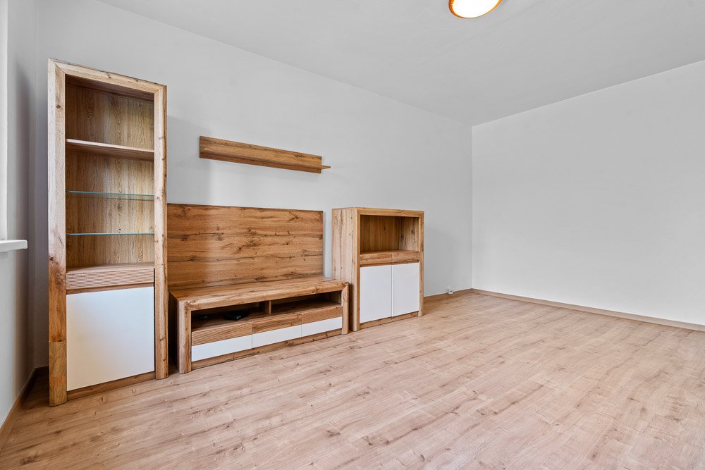- součástí pronájmu je převážná část vybavení na fotografiích – kuchyňská linka se sporákem, jídelní stůl se židlemi, šatní skříň a botník v chodbě, pračka v koupelně, manželská postel včetně matrací, šatní skříně a komoda v ložnici, TV stěna a dvě komody v obývacím pokoji