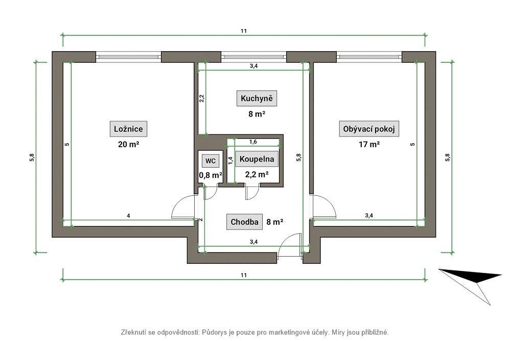 - byt 2+1 s užitnou plochou 57 m²