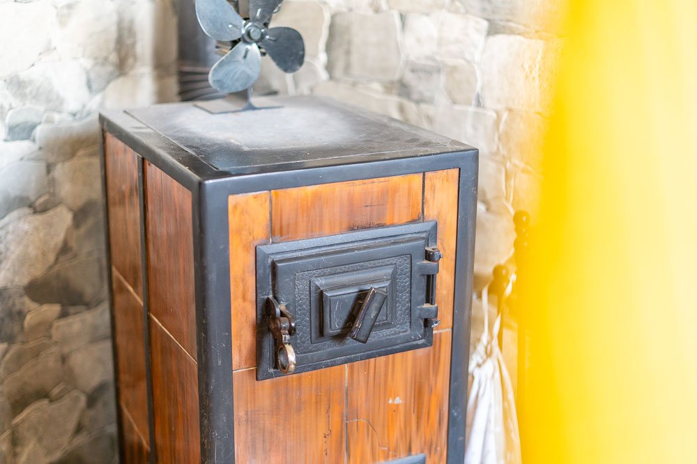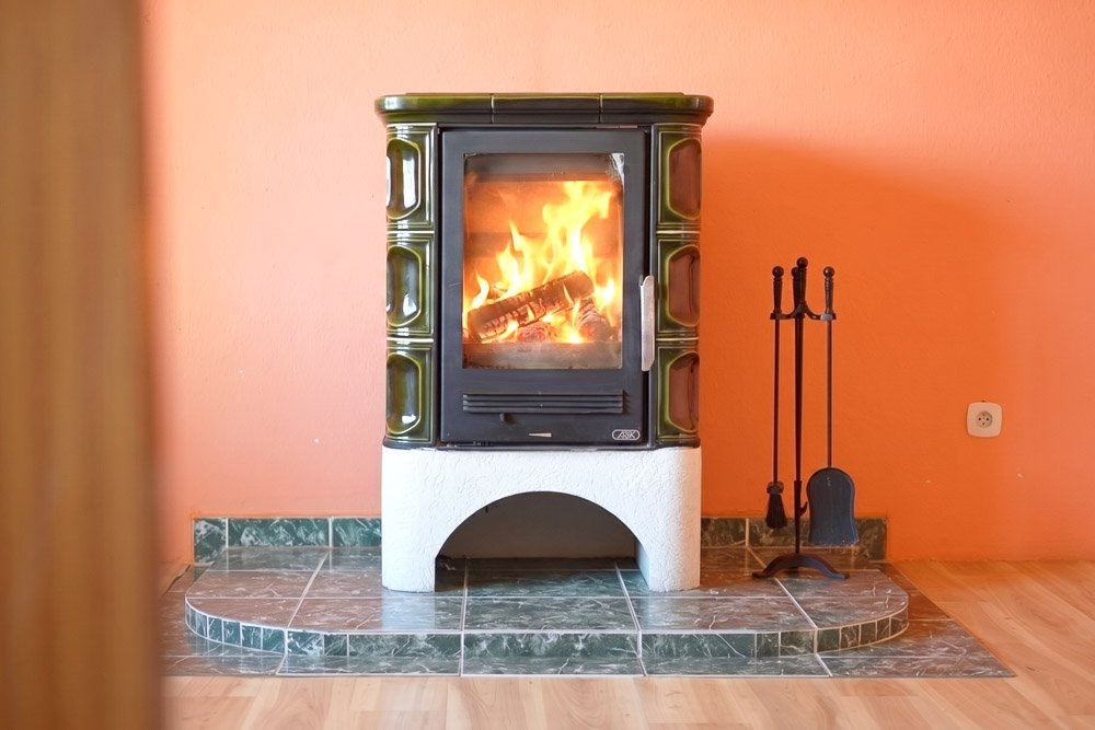 - vytápění je řešeno ústředním plynovým systémem (atmosférický kotel 2002) doplněným o kachlová krbová kamna v ložnici v 1.NP a v pokoji ve 2.NP